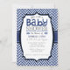 Blåblått Grått Herringbone Babybildsinbjudningar Inbjudningar