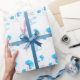 Vacker stiliserad lös tvättar vattenfärgsblomma i ljusblå himlar-blå, vit och grått-konst blommigt bröllop brud och trimmar namn papper. Anpassa med egen brud och egna brudar namn och hälsning. Sarah Trett målar och utformar.