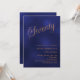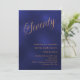 En modern inbjudan till snyggt för 70:e födelsedagsfesten. En marin blå, ojämn färgad och ord 70 skrev med elegant brev i faux guld. Anpassa och lägg till information om namn och party.