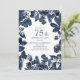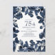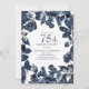 Löv och blommigt i marinblått/indigo på det vita 75:e födelsedagsfest inbjudan. Kontakta oss om du behöver hjälp med att anpassa eller matcha produkter.