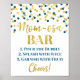 Momosa pub-skylten poster för babydusch i vitt med en svart och guld-konfetti mönster med handskriven stil-skrift. Perfekt för babyduschar och baby sprinkle.