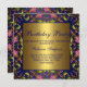 Blåblått och Guld Blomsterträdgård - födelsedag Inbjudningar