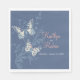 Vackra blommigtar med två konstfjärilar och krämer i mörk blått, korallellt orange-rosa på en muterad mörk blått bakgrund med pappra blöjor från bröllop. Ett underbart personligt tillskott till bord i bröllop eller till drycker efter bröllop. Anpassa med din brud och brudgumms namn. Perfekt för fjärilsmemnade eller trädgårdsbröllop. Andra matchande artiklar och alternativ för färg är tillgängliga. Sarah Trett målade på ett unikt sätt i vattenfärg och utformade för www.mylittleeden.com