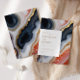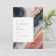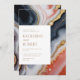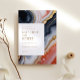 Contemporaryns bröllopsinbjudan med en vit ruta där all din information är elegant skriven på en abstrakt och en marmor bakgrund. De agate-detaljerna är i skuggor av orange och blå med guld-accenter. Kolla in vår butik om du vill ha fler artiklar från den här samlingen i bröllop.