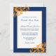 Elegant Blåblått och orange bröllopsinbjudningar. En modern marinblått med blomstrande orangar. Anpassa enkelt för din bröllopsdag. Matchande produkter är tillgängliga. Yt efter © Mujka Design