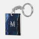 Den här nyckelkedjan har en elegant och en glamorös marmorbakgrund med geode gemstone-detaljer och faux silver glitter-accents. Monogrammet kombinerar handskript och modernt sans serif typsnitt för ett klassigt och sofistikerat utseende. Detta kommer att bli den idealiska presenten eftersom den kan anpassas med namn och en början. De djupblåa nyheterna gör det till perfekt för höstfall och vinter.