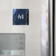Den här magneten har en elegant och en glamorös marmorbakgrund med geode gemstone-detaljer och faux silver glitter-accents. Monogrammet kombinerar handskript och modernt sans serif typsnitt för ett klassigt och sofistikerat utseende. Detta kommer att bli den idealiska presenten eftersom den kan anpassas med namn och en början. De djupblåa nyheterna gör det till perfekt för höstfall och vinter.