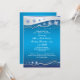 Blue, silver grått, vit snöflingor vinterbröllop inbjudningskort för möhippan, med ett vågat band i silver grått med stjärnor och blå elegant snöflingor på ljusnande övertoningsblå himmel-blå bakgrund. Modern och contemporary som ändå passar för ett traditionellt bröllop. Denna elegant-, klass- och snyggt-utformning kan användas för andra särskilda tillfällen, t.ex. förlovningar eller årsdagar. Ett val av perfekt för vinter, december eller bröllop till jul.