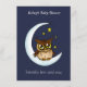 Det lilla knubbiget brunt baby uggla stannar på måne med stjärnor överallt. Förutsättningar och råd för babyskor i baby