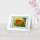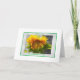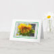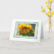 Ett anteckningskort med ett vackert ljus som fångar solrosa redo för att få fullt att blomma in i en vit och grönt ram. Kortet läser Må din dag vara ljus och vacker i ett grönt som matchar grönten ram.