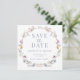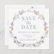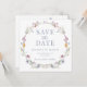 Elegant: Rustik färgstark jokerblomma med blå text bröllop spara datum fotoinbjudan.