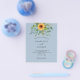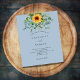 Observera att inbjudan är papper och mycket tunn. Kuvert ingår inte. Om du vill ha mer omfattande inbjudningar (samma design) kan du besöka vår butik. En dammig blå bakgrund som dekoreras med solblommor, eukalyptus greenery. Anpassa och lägg till information om namn och party.
