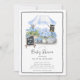 Blåblommig blåbildsvisning i Baby Inbjudningar