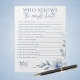 Elegant Watercolor Blue Flower som känner till par Best Möhippa Game Anteckningsblock Pack på 40 spel. Kasta bort lakan för enkel förvaring och gästdistribution! Få gästerna att svara på frågorna så gott de kan till figur om vem som bäst känner paret. Gästen med de rätta svaren vinner!