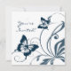 Blåblommiga och vita fjärilsljudsinbjudningar inbjudningar