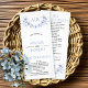 Blå blommigt ram med bröllop-ceremoni i monogram och party-program. Vid ceremonin i bröllop och i party-programmet visas en vacker perfekt till minne av speciella dag. Programmet har en vintage-inspirerad blå blommigt ram som på ett skickligt sätt omger parets monogram. Initialer presenteras i en sofistikerad blå nyans som skapar en brännpunkt inom den känsliga blommigten arrangemang. Den övergripande utformningen framstår som romantisk charm och ger gästerna evenemangsschemat för både ceremonin i bröllop och för firandet av party efteråt.