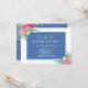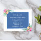 Personlig bröllop spara datum med accenter för blommigt av söt rosa och blått center med vitt teckensnitt. Tema elegant blommigt bröllop.