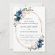 Blåblommor av Rosa i elegant Guld Bloom Bröllop Inbjudningar