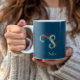 Vattenfärgad vilda blommor, första blått kaffe mugg. Monogram på två sidor. Perfekt för gåva.