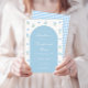 Utforska vår beundransvärda, ljusblå duschinbjudan i pojke som visar en charmig och söt blomma i baby blue vår med boho chic Arch och blue gingham längst bak på kortet. Den här fina designen är perfekten för att välkomna din lilla med glädje och elegans.