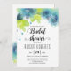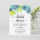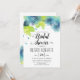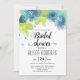 Bouquet med tealblåblommor och kursivt skript med handskrivet kalligrafi blommigt vår bröllop inbjudningskort för möhippan. Överdelen är täckt av en bukett av blåa blommor med grönt löv.