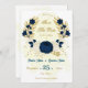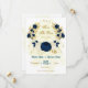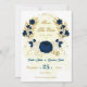 Romantisk marin blå och vit blomma med guld löv botaniskt spara datuminbjudan Uppgifterna i glitter simuleras.