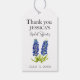 Blåbonde, blå blommor, Texas, natur vattenfärg Bröllopspresentetiketter. Elegant, enkel kalligrafi, Bröllopsfest. Anpassa det med dina detaljer.