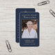 Affärskortets dimensioner: 3,5 x 2,0 tum. Den här enkla mallen för betalkort på en klassisk blå bakgrund med skripttypografi av elegant guld kan ges som en keepsaké vid en Firande av Life- eller begravningstjänsten eller skickas som en speciell hyllning till dem som inte kunde närvara. Anpassa det här kortet med ett favoritfoto, namn, datum (framsidan av kortet) och val av bön eller dikt (baksidan av kortet). Enkel att anpassa.