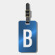 Byt enkelt ut det första monogrammet på framsidan och namn och adress på baksidan av det blå bagagetaggen.