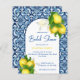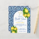 Blåplattor och citron från Amalfi Positano Mediterranean stil möhippa budgetinbjudan till överkomligt pris för inbjudningskort för möhippa.