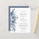 Den här romantiska bröllopsinbjudans lämnat hand kant har en blommigt av dammig blåa blommor och grön . I anpassadet kombineras handskrift, tryckplåt och kursivt typsnitt i dammblått och kol-grått på vit bakgrund. Den omvända sidan är en koordination av fast dammblått.