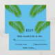 Den här elegantens OSA kort för ett bröllop är en perfekt för en modern sommarstrandnära bröllop. Den romantiska designen har grönt handflatan löv med elegantens svarta typografi på tealbakgrund.
