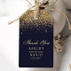 Blåbröllopsförmån för Guld Confetti Navy Wedding Presentetikett