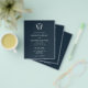 Spara pengar på bröllop med den här inbjudningen till budgetbröllop. De har en blandning av klassisk och skripttypografi i vitt över en fast blå bakgrund. Mata in initialerna för bruden och trimmen i mitten av en vapensköld. Alla färger kan anpassas för att passa ditt bröllop färg-program. Använda mallen fält att anpassa med namn och information. Blanda och matcha med många av mina utformningar för att skapa ditt anpassade bröllop-tema. En minimal men ändå elegant utformning av nautisk- och strandbröllopsidéer på en budget. Besök www.zazzle.com/dotellabelle om du vill se matchande traditionella bröllop-stationers svit