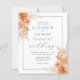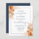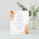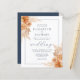 I hörnen av denna romantiska inbjudan till boho-bröllop finns vattenfärgade blommigtar i mjuka jordtoner av bränd orange, terracotta, beige och elfenben. Anpassadet kombinerar marin blå serif, kursiv och skript typsnitt som ramas av en marin blå rektangel på vit bakgrund. Den omvända sidan är en koordinerande solid marin blue.