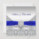 Elegant diamant silver och royalets blå bröllopsinbjudan.