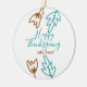 Blåbrun höst löv blomma h, happy thanksgiving julgransprydnad keramik
