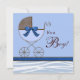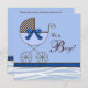 Bläckbrun och blå baby-vagn med marin blå bog och blå och brun zebra ränder pojke-duschinbjudningar. Den här blå zebra-designen är enkel personlig för evenemanget, välj bara orangen "Anpassa den!" för att börja lägga till din händelseinformation, teckensnittet stil, teckensnittet storlek & färg och ordalydelsen längst fram och bakåt.