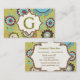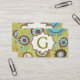 Cute retro-blommor turkos blått brunt blommönster anpassningsbar monogram affärskort, med vackra mönster av abstrakt blommor i turkosblått med brunt kontur på oliv grönt bakgrund och ditt monogram i ett elfenben ram. Ändra texten för att anpassa den och lägg till ditt namn eller ditt företag. En feminin, giftig, blommigt med en vintage som känner för den.