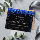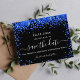 Observera att det här Spara datumet är pappert och mycket tunt. Kuvert ingår inte. Om du vill ha ett tjockare Spara datumkortet (samma design) kan du besöka vår butik. En svart bakgrund dekorerad med royal blue konetti. Anpassa och lägg till datum och namn/ålder. Texten: Spara datumet skrivs med ett stort trendig-handskript i stil.