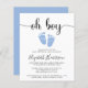 Tvätta den budgetvänliga duschen i pojke med e-postinbjudan med "oh boy" i ett snyggt skript med dekorationer och en pastellblå vattenfärg på baby fötter. Underliggande kan du enkelt anpassa duschen med e-postinformation.