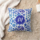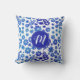 BlåChina Hand plockade Blommönster och monogram Kudde
