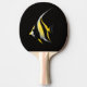 Black 4 Luxe tropical fish paddle design, Moorish Idol artwork edition, realistic marine life illustration, sleek black ping pong paddle, refined nature inspired sports gear, premium dark aesthetic finish, artistic athletic accessory concept, exotic fish illustration artwork, gallery quality artistic finish design, radiant yellow and white inspired motif, elegant minimalist art concept style, subtle luxury inspired finish, crisp detailed tropical fish portrait, timeless artistic black background, high quality table tennis sports accessory, sophisticated ocean lovers gift item, luminous aquatic contrast inspired artwork, aesthetic balance inspired design edition, collectible Black 4 Luxe creation, premium underwater inspired sports accessory.