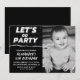 Svarta 4e födelsedagen-inbjudningen Foto LÅT OSS GO PARTY