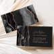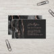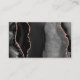 Det verkliga affärskortet i gods har en svart vattenfärg som ruttnar gräns med ro guld faux glitter på den lämnat och ro rosa på högerna på en svart bakgrund. En matchande svartvit och ro guld-agate-design visas på baksidan.