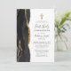 I den här elegantens lämnat kant finns det en svart vattenfärgad agat gräns som trimmas med guld faux glitter. En faux-folie kor i guld visas ovanför anpassadet, som kombinerar handskrift, ritplåt och kursivt typsnitt i kol-grått på vit bakgrund. Den omvända sidan har en matchande svartvit och guld agate-design. Idealisk för en pojkes första gemenskap.