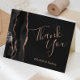 Den här eleganten är bröllop tack vare ditt kort en svart vattenfärgsagat gräns som trimmas med faux ro guld glitter. Anpassadet kombinerar ord "Tack" i handskriftsskriptet för ro färgad och namn i briden och trimmen i kursivt teckensnitt på en bakåtriktad bakgrund.