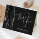 Den här eleganten är bröllop tack vare ditt kort en svart vattenfärgsagat gräns som trimmas med faux silver glitter. Anpassadet silver grått-text kombinerar ord "Tack" i handskriftsskript och namn i bruden och trimmen i kursivt teckensnitt på en svart bakgrund.