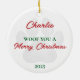 Bring holiday joy to your tree with this charming personalized dog Christmas ornament! It is illustrated with a watercolor dog wearing a festive red Santa hat and can be customized on the back with your pet’s name, a special message (e.g. “Merry Christmas”) and the year. Making it a heartfelt gift for dog lovers and a keepsake to treasure for years to come.