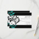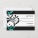 Black and Aqua Blommigt Swirl Bröllop OSA Kort